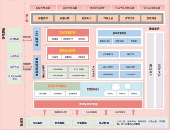交易監(jiān)管系統(tǒng)是深圳證券交易所(以下簡(jiǎn)稱深交所)貫徹黨中央關(guān)于資本市場(chǎng)的重大決策部署,落實(shí)加強(qiáng)對(duì)交易的全程監(jiān)管,依法從嚴(yán)打擊證券違法活動(dòng)等監(jiān)管要求,完全自主設(shè)計(jì)研發(fā),具有完整知識(shí)產(chǎn)權(quán)和中國(guó)特色的智能化證券交易監(jiān)管系統(tǒng)。交易監(jiān)管系統(tǒng)構(gòu)建全面支持實(shí)時(shí)監(jiān)控、調(diào)查分析、監(jiān)管流程、業(yè)務(wù)研究的一體化工作平臺(tái),關(guān)鍵性能指標(biāo)和業(yè)務(wù)支持能力達(dá)到國(guó)際領(lǐng)先水平,是科技賦能監(jiān)管的應(yīng)用典范。